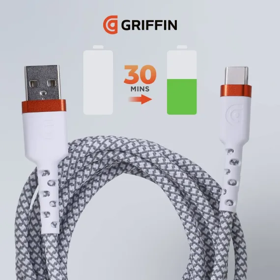 Power your devices with confidence using the GRIFFIN USB-C to USB-A Cable,