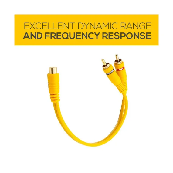 The GSI GNA2M RCA Y‑Adapter provides a reliable solution for splitting a single RCA female output into two male RCA connections. Featuring gold-plated connectors for excellent signal conductivity and corrosion resistance, this yellow cable is easy to identify and ideal for subtle installations. With a robust yet flexible outer jacket, it simplifies routing in tight setups. Perfect for audio setups involving subwoofers, amplifiers, TVs, DVD/CD players, or receivers, the GNA2M ensures clean, high‑quality signal distribution across dual outputs.