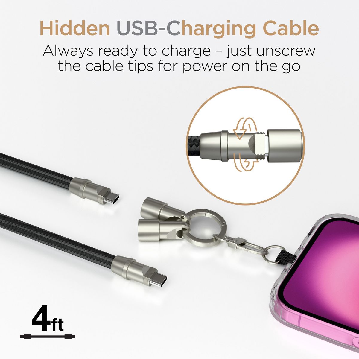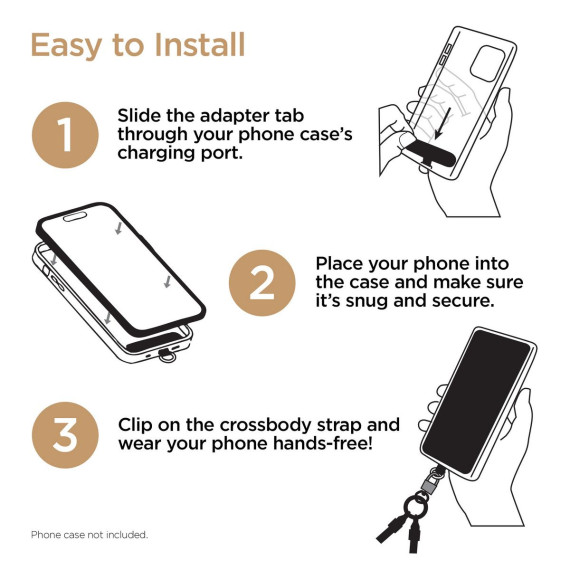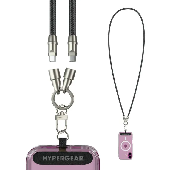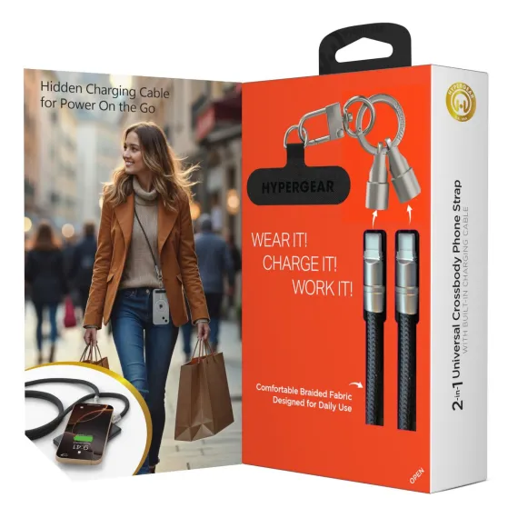 No pockets? No purse? No worries! Wear your phone hands-free and stress-free with the HyperGear® Universal Crossbody Phone Strap. With its combination of comfortably soft braided rope and durable matte metal hardware, it’s as chic and stylish as it is practical. Install it to your phone case in seconds, and the secure, undroppable design keeps your phone safe, accessible, and within easy reach, even during your busiest days. A hidden USB-C® cable built into the strap ensures you’re always ready to charge – just twist off the cable tip covers for access to super-fast power wherever you go. Compatible with all USB-C® devices: iPhone® 15 or later, Samsung Galaxy®, Google Pixel™, and more.