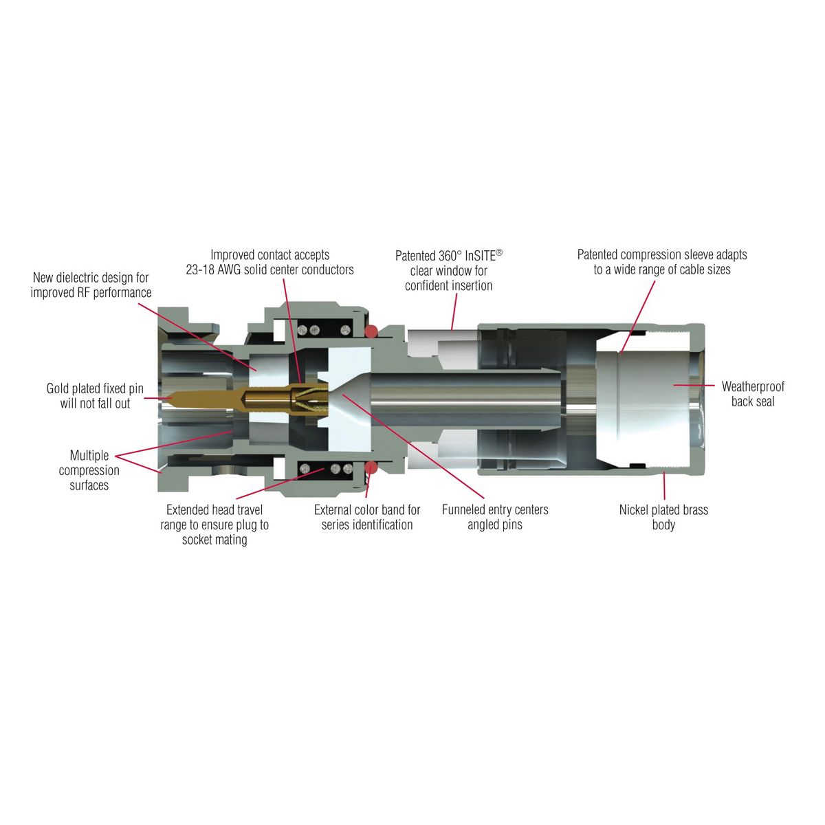 IDEAL RG59 inSITE Compression Connectors are all single piece designs that are manufactured to meet the demands and expectations of the satellite and cable TV industry. All series of connectors are effortlessly positioned onto properly stripped coax and are permanently connected when terminated with an IDEAL OmniSeal Compression Tool. All IDEAL compression F-connectors use a standard 1/40, 1/40 strip. Multiple package quantities ensure that you will have the right connector for your application. This is a pack of 35.