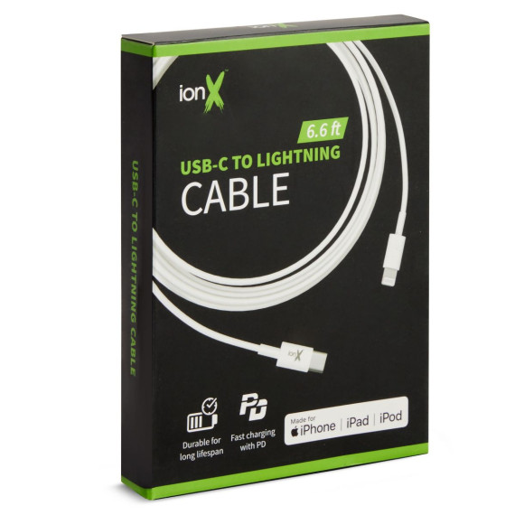 ionX 6.6FT USB-C to Lightning Charging Cable (MFI Certified) Compatible With iPhone, iPad, and iPod, White