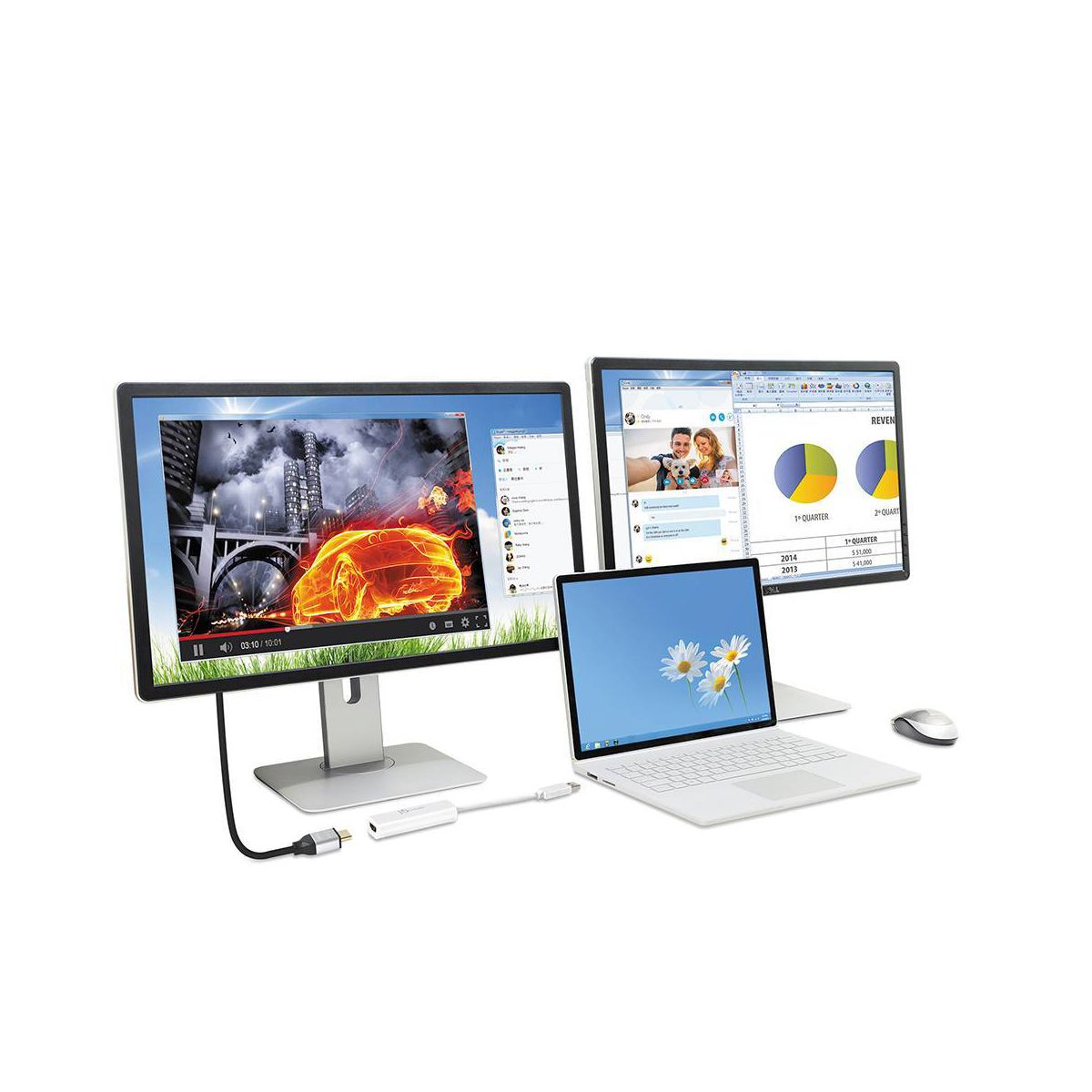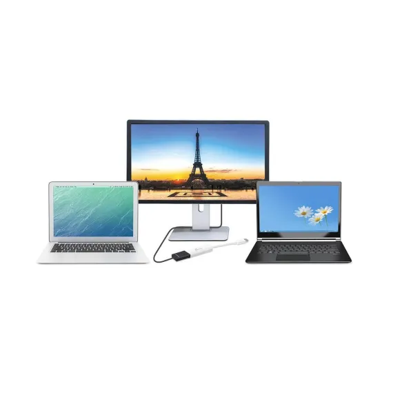 The JUA254 USB to HDMI Multi-Monitor Adapter works as an external video card, instantly allowing users to attach additional displays via HDMI connection without the hassle of a lengthy setup or having to install additional hardware. The USB 3.0 Display Adapter can support up to four displays running on the same computer, turning your workstation into a fully-functioning, multi-display powerhouse. This USB adapter works as an external video card, instantly allowing additional displays without the hassle of opening the computer casing and installing an external graphics card. You can have a second monitor with an extended display, a mirrored display, a rotational display (rotation mode not available for Mac ), or make it your primary monitor. Now enjoy true 1080p HD resolution through any Windows or Mac computer with a USB 3.0 port. These adapters are also backwards compatible with USB 2.0 resolutions and playback, which are ideal for office applications. The simple plug-and-play function allows you to connect your computer to a second monitor or projector within seconds to create a new visual environment on Windows 10.