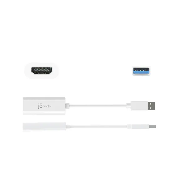 j5create USB A 3.0 HDMI Adapter - White: Male-to-Male Connection, 7.63-Inch Length