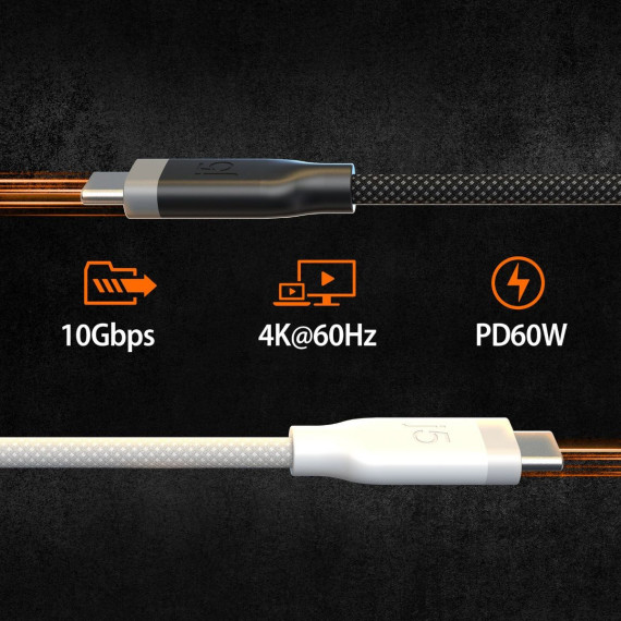 It has a fast maximum data transmission up to 10Gbps and a power delivery charging capacity of 60W. When connected to a device that enables video output, such as a Thunderbolt 4 docking station, the cable can also support up to 4K60 Hz displays.