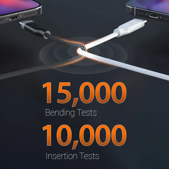 With a double-braided polyester cover, the exterior is abrasion-resistant, which reduces fraying and prolongs the lifespan of the cable.