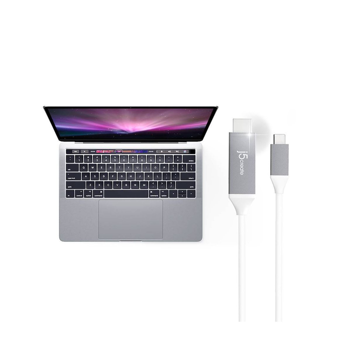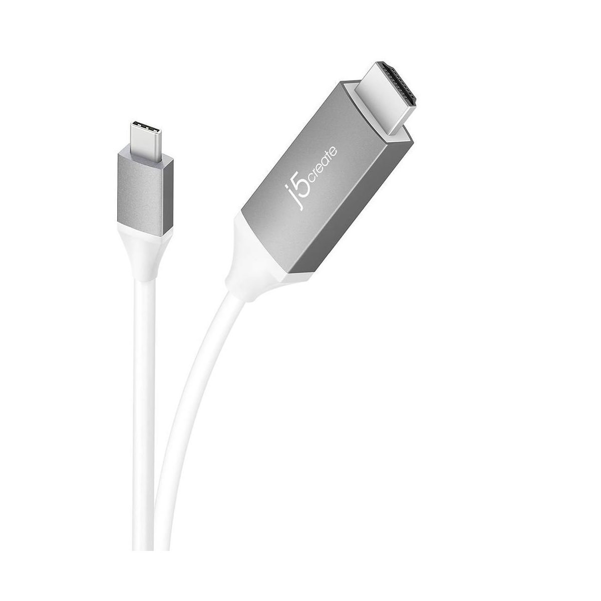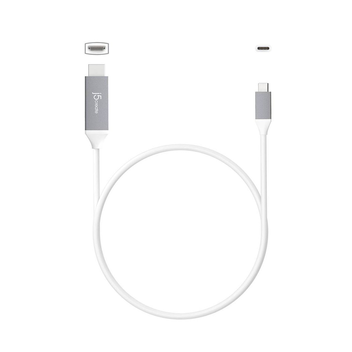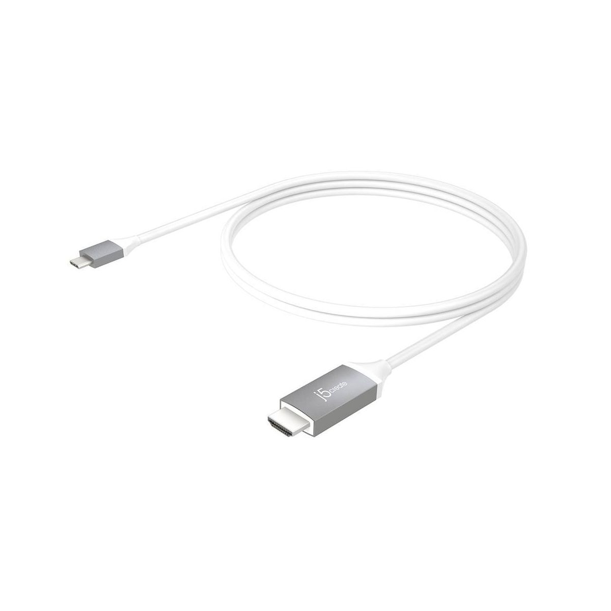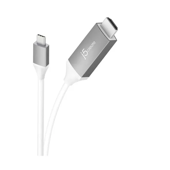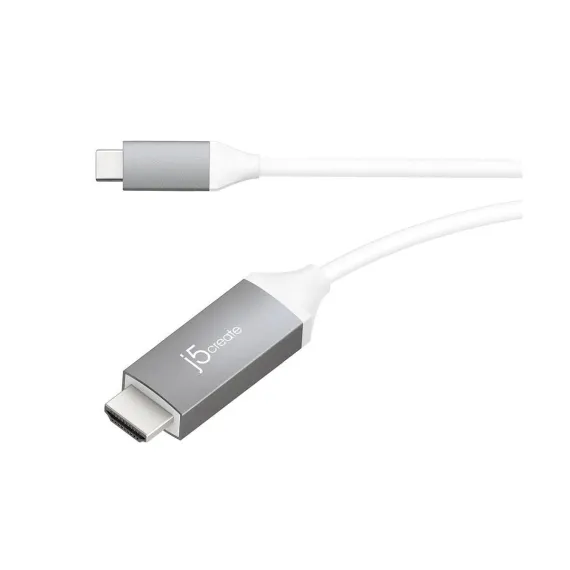 j5create USB-C to 4K HDMI Cable: 6 ft Male-to-Male Cord, Gray/White