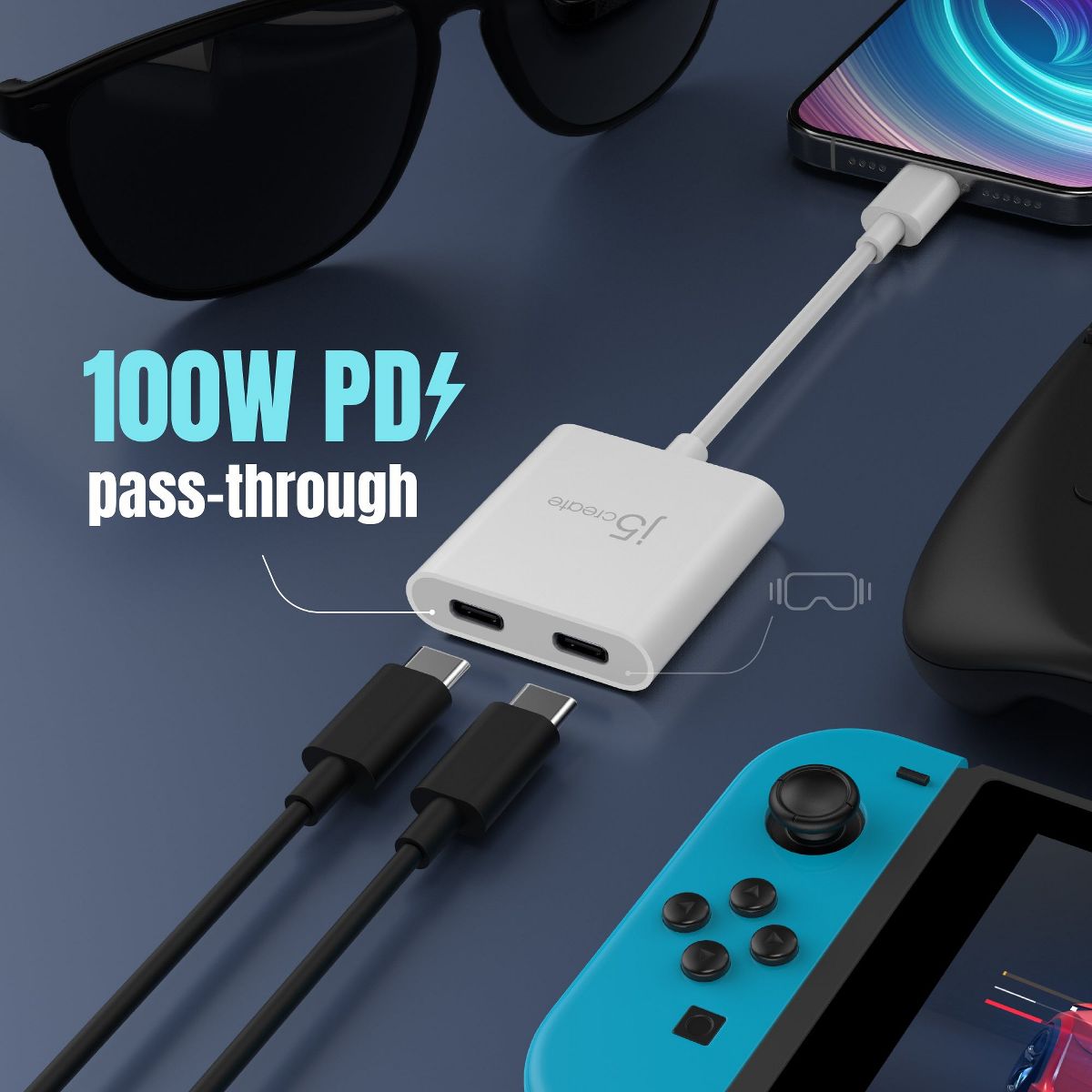 j5create USB-C to Dual USB-C with Video or Power Delivery, JCA164