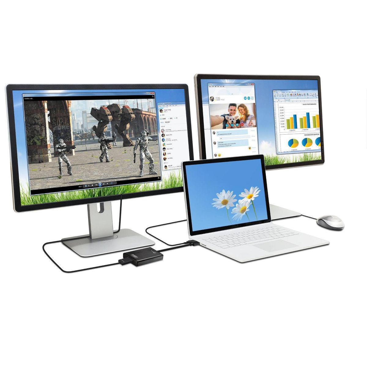 The JUA350 acts as an external graphics card, enabling you to connect additional monitors via HDMI without complex setups or installing internal hardware. Supporting up to four displays on a single computer, it transforms your workspace into a versatile multi-monitor setup.