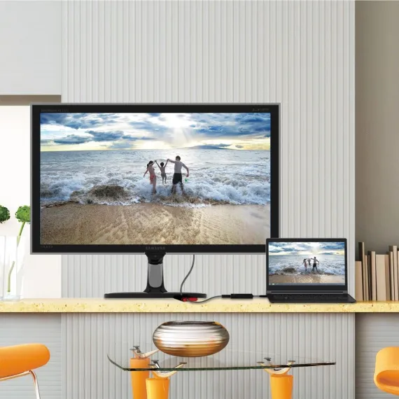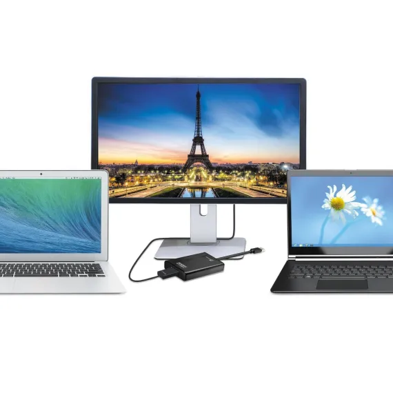 The JUA350 acts as an external graphics card, enabling you to connect additional monitors via HDMI without complex setups or installing internal hardware. Supporting up to four displays on a single computer, it transforms your workspace into a versatile multi-monitor setup. Choose from extended, mirrored, or rotated display modes (rotation not supported on Mac), or set your new monitor as the primary screen—perfect for boosting productivity and multitasking with ease.