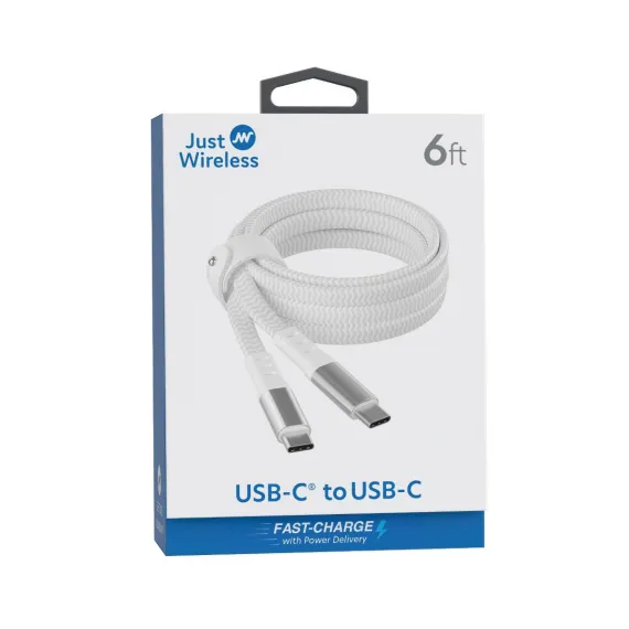 The Just Wireless Ultra 6' USB-C to USB-C nylon braided charging cable is the ultimate companion for your tech-fueled life. This cable is engineered with a double injection process, nylon braiding, and ultra-strength connector joints, ensuring unmatched durability and performance. It provides a reliable charging solution for a wide range of USB-C devices, including smartphones, tablets, laptops, gaming consoles, cameras, power banks, headphones, and other devices.