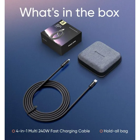 MAGIC JOHN 240W 4 in 1 Charging Cable, 4FT USB C to Lightning Cable [MFi Certified]-Black