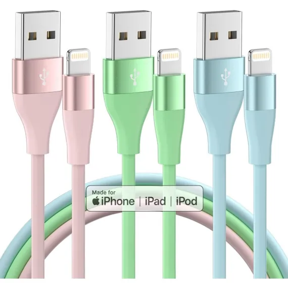 Perfect length & Delightful Color: Indulge yourself of our three colorful lightning cable, each boasting an perfect length of 10 feet. With this 10 feet length, you have the freedom to charge your device wherever you desire. And our cables feature reinforced joint designs that have successfully withstood numerous bending tests
