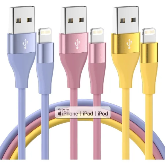 Perfect length & Delightful Color: Indulge yourself of our three colorful lightning cable, each boasting an perfect length of 10 feet. With this 10 feet length, you have the freedom to charge your device wherever you desire. And our cables feature reinforced joint designs that have successfully withstood numerous bending tests