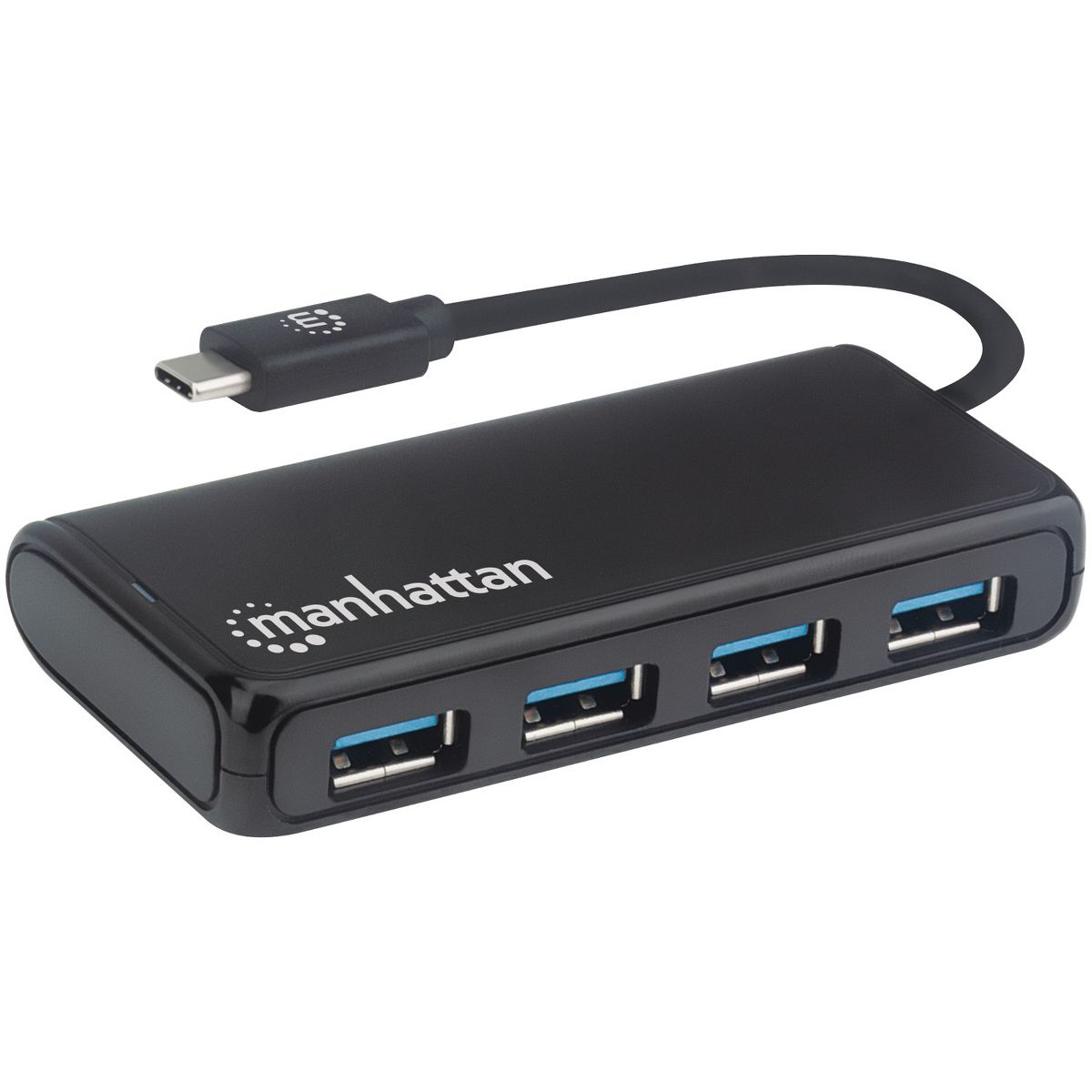 Manhattan® 4-Port USB 3.2 Gen 1 Hub with USB-C®-Male to 4 USB-A Females in Black