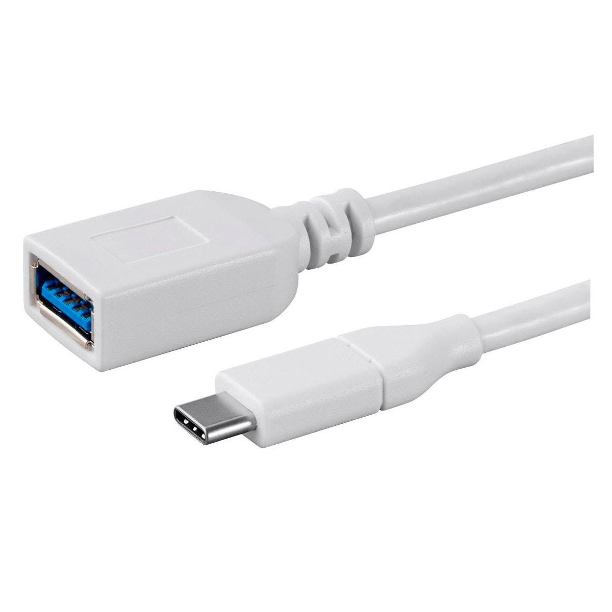 Monoprice 0.5ft USB-C to USB-A Female Extension Cable, 3.1 Gen 1, Fast Charging, 5Gbps - White