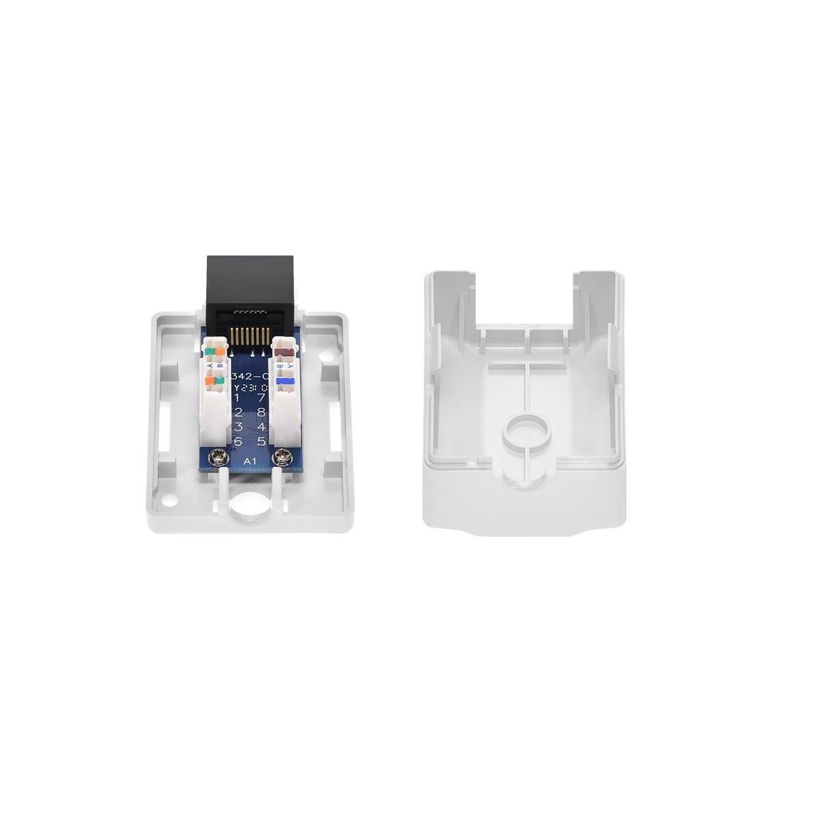 Surface mount CAT 5e box for when in-wall box and wire installation are not possible. A clean and simple solution for network expansion. Box is durable plastic and white in color. Comes with double sided adhesive tape to mount the box to the wall, or you can use the two screws provided to screw it down to baseboard, window sill, trim, etc. Jack is included. Wire connections are easy. You'll use a 110D or Krone impact tool to crimp and connect the wires. Box has a slit in the back side to allow the wire to enter the box for flush moutning. Box top snaps on and off for easy access to wires. Use it with stranded or solid cable, any gauge. Installation instructions included in package.