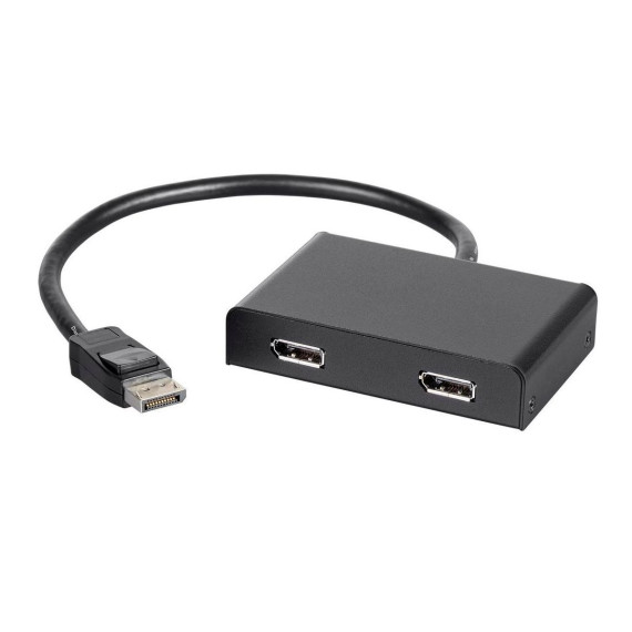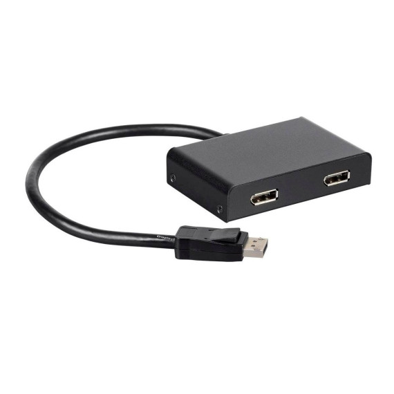 This 2-Port DisplayPort 1.2 to DisplayPort Multi-Stream Transport (MST) Hub enables two different display modes on up to two monitors connected to a single DisplayPort output. You can connect a single display at resolutions up to 4K@60Hz to mirror your computer's desktop. Alternatively, you can connect two monitors and the hub will extend the image to span the two displays at resolutions up to 4K@30Hz for each display. This hub is ideal for digital signage and large video displays in schools, churches, conference rooms, at trade shows, and in retail outlets.