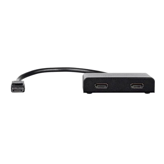 This 2-Port DisplayPort 1.2 to DisplayPort Multi-Stream Transport (MST) Hub enables two different display modes on up to two monitors connected to a single DisplayPort output. You can connect a single display at resolutions up to 4K@60Hz to mirror your computer's desktop. Alternatively, you can connect two monitors and the hub will extend the image to span the two displays at resolutions up to 4K@30Hz for each display. This hub is ideal for digital signage and large video displays in schools, churches, conference rooms, at trade shows, and in retail outlets.