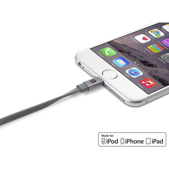 The Monoprice™ Premium Flat Apple MFi Certified Lightning to USB‑A Cable offers reliable charging and syncing for your iPhone®, iPad®, or iPod®. Its flat, tangle-resistant design and durable aluminum connectors ensure long-lasting use. Apple MFi Certified, it guarantees full compatibility and dependable performance with all Lightning®-equipped iOS® devices.