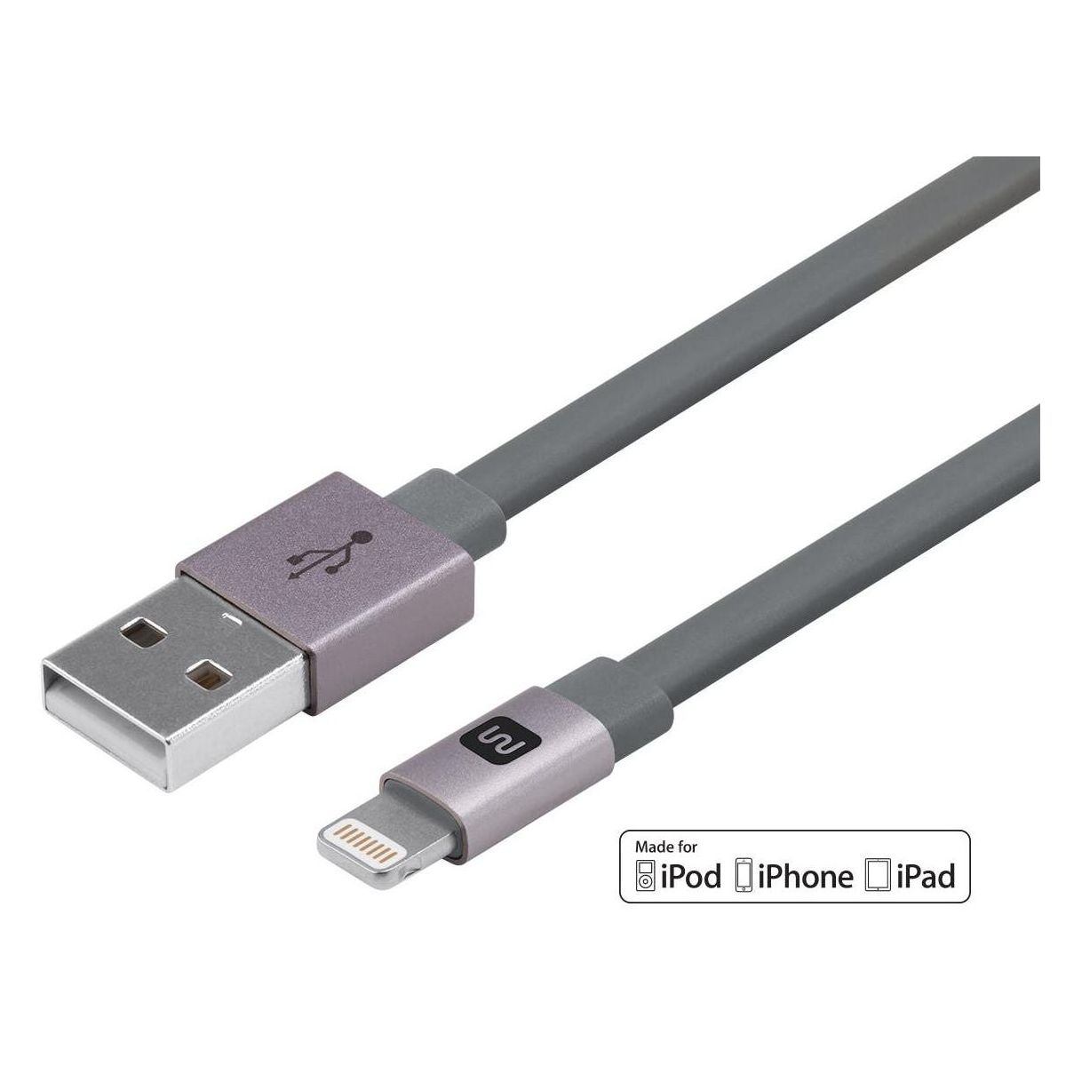 Monoprice 3ft Lightning to USB-A Charging Cable, Apple MFi Certified, Flat - Gray