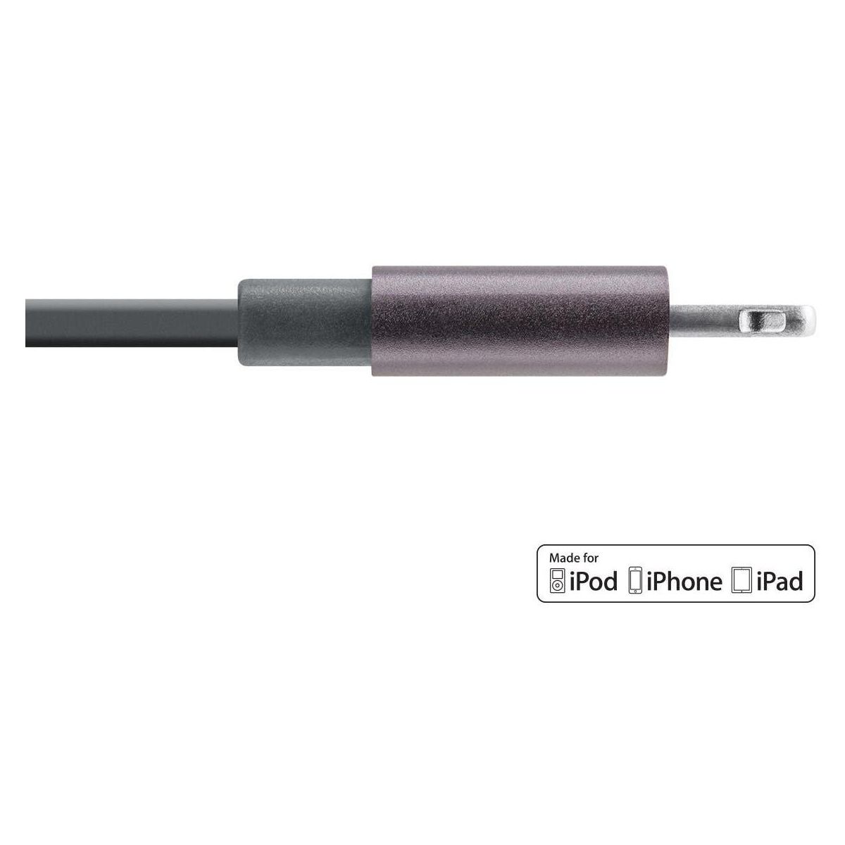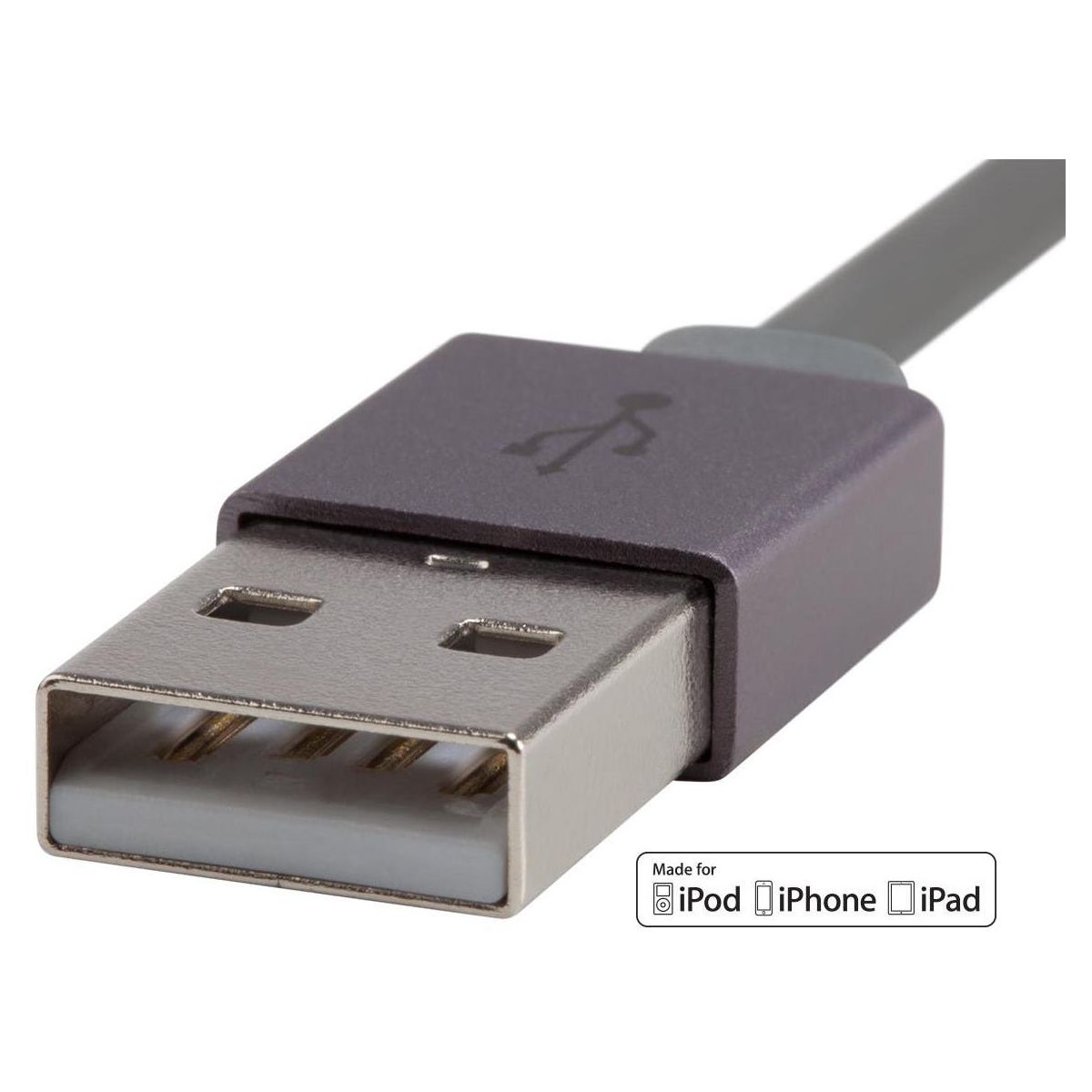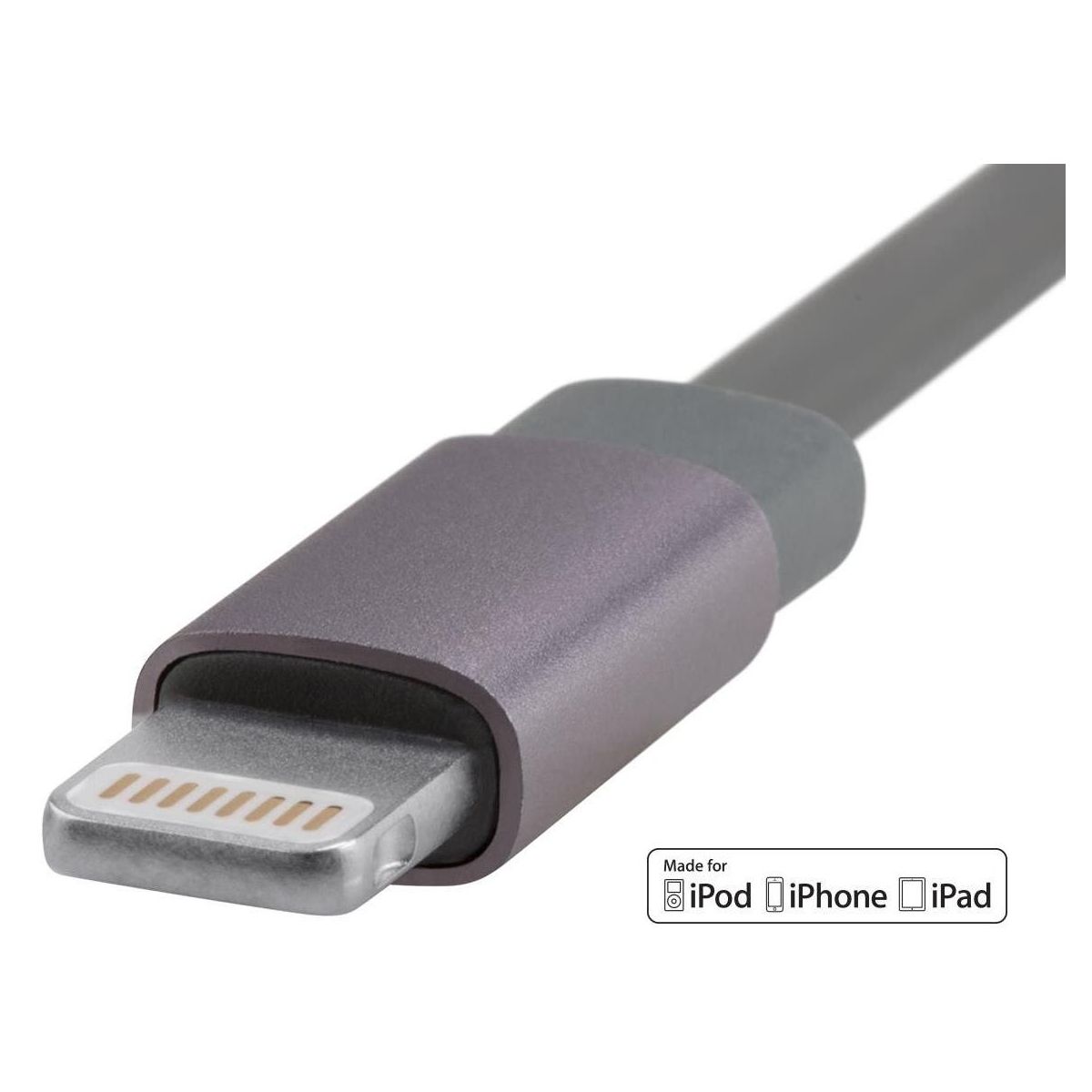 Charge and sync your Apple iPhone®, iPad®, or iPod® with this Apple MFi Certified flat cable. Its tangle-resistant design saves hassle, while durable aluminum connectors ensure long-lasting use. Tested for full compatibility with all Lightning®-equipped iOS® devices, it offers reliable performance for charging and syncing your favorite photos, music, and data.