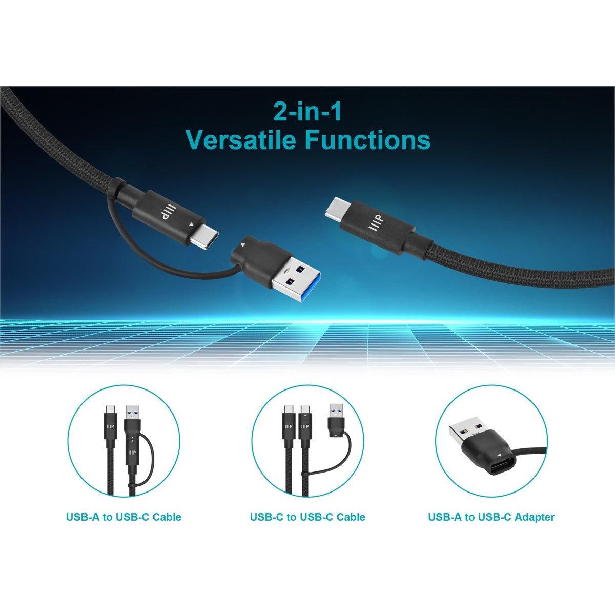 Monoprice 3ft USB4 2-in-1 USB-C Braided Cable, Ultra High-Speed, 240W EPR 4K60Hz 20Gbps - Black
