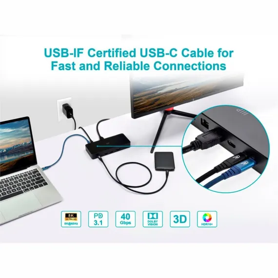 Monoprice USB4 40Gbps Cable 240W EPR, 8K HDR, USB-IF Certified, Braided, Ultra High-Speed, 3ft, Black ensures fast and reliable data transfer and charging. Built for durability and compatibility with a wide range of devices.