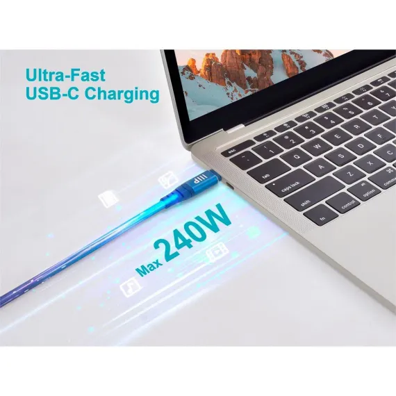 Monoprice USB4 40Gbps Cable 240W EPR, 8K HDR, USB-IF Certified, Braided, Ultra High-Speed, 3ft, Navy ensures fast and reliable data transfer and charging. Built for durability and compatibility with a wide range of devices.