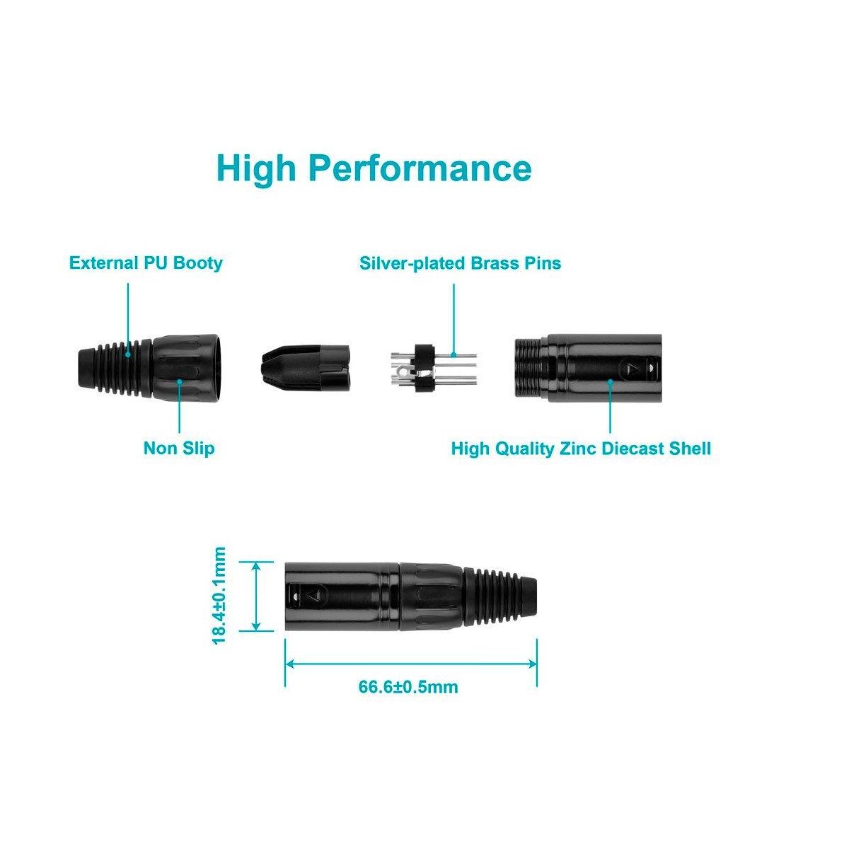 Monoprice 5-Pin Male DMX Connector - Black | Anodized Aluminum With A Plastic Cap, Rubber Strain Relief Boot, And Three Solder Cup Connectors
