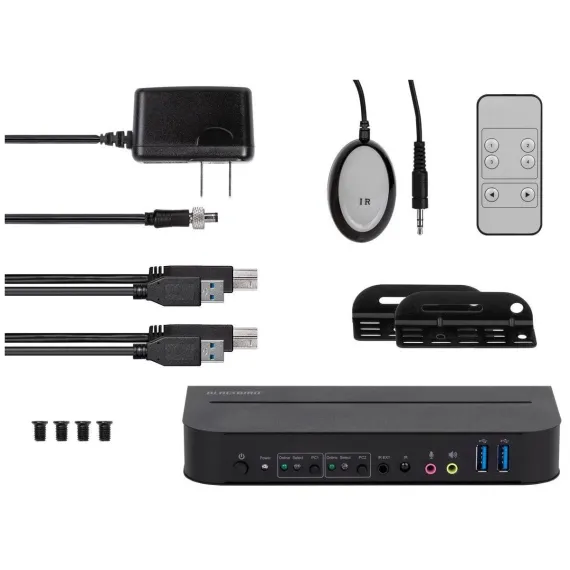 Monoprice Blackbird 4K Displayport 1.4 USB 3.0 2x1 KVM Switch, 4K@60Hz, HDR, YCbCr 4:4:4, HDCP 2.2, Share 2 Computers with 1 Keyboard Mouse Monitor