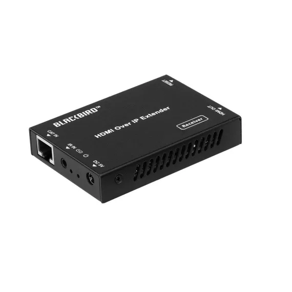 The Blackbird H.265 HDMI over IP Kit allows you to distribute an HDMI video signal to distances up to 328 feet (100 meters) over a single Cat5e/6 Ethernet cable. In addition to a normal connection between the Encoder/Transmitter and Decoder/Receiver, the Encoder can be connected directly to a computer and the signal can be decoded using the VLC free, open source media player. It can also connect to one or more Decoders/Receivers through an Ethernet switch, thereby allowing distribution to multiple displays. it supports the H.264 and H.265 codecs and video resolutions up to 1900x1200@60Hz with the YCbCr 4:4:4 color space.