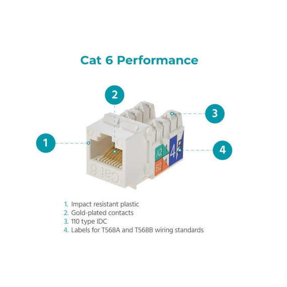 This is an easy to use, modular cat6 RJ45 keystone jack for ethernet. The keystone jack installs into a keystone wall-plate or patch panel (not included).