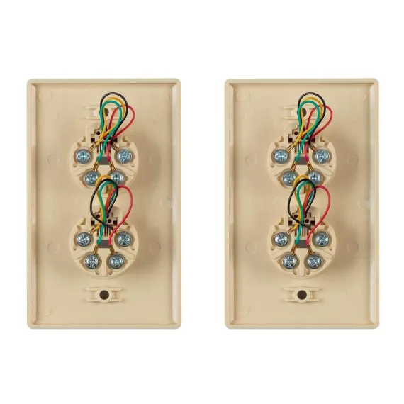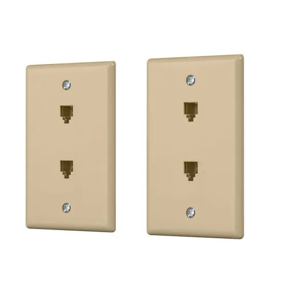 Monoprice Duplex Phone Jack Plate - Ivory (2 pack) | Terminating 4-conductor (4P4C) Phone Lines