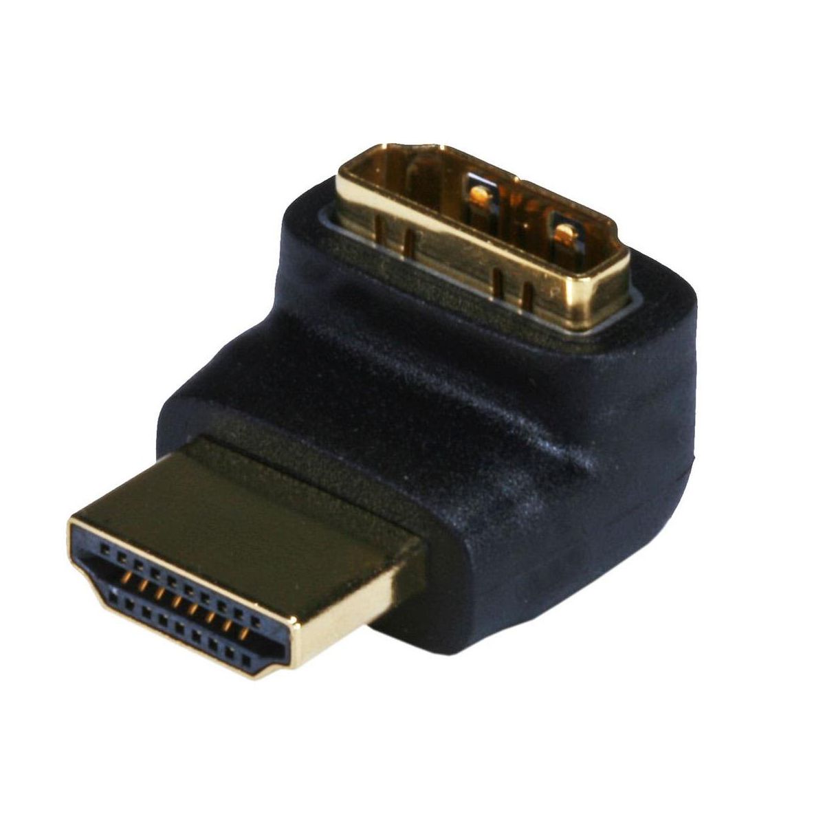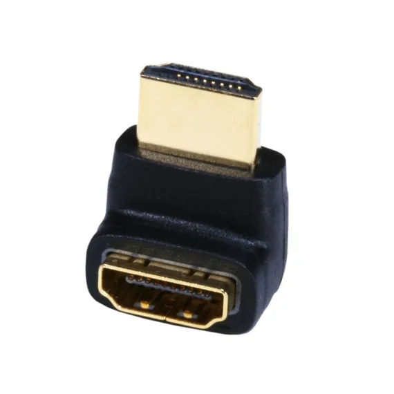 Are tight spaces giving you a problem connecting your HDMI cable? Tired of having to move your equipment just to reach those hard-to-get-to-places? Use an HDMI port saver to save time and effort in your cable setup! Our 270 degree HDMI port saver (male to female) gives you the flexibility you need without risking bending your HDMI cables excessively, which may damage the cable or, even worse, the ports on your expensive equipment. This port saver will help ease the strain at the point of connection to eliminate damage to the HDMI ports on your devices. Dimensions: 1.09" x 0.64" x 0.78". WARNING: Since port alignment differs from one device to another, it is difficult to state which way this port saver will point on your particular device. For that reason, we offer two different angled models, one with a 90 degree bend, which angles toward the beveled side of the connector, and a 270 degree connector, which points in the opposite direction. Please look at the orientation of the HDMI port on your device to determine how it is aligned and whether this port saver will point your cable in the direction you desire.