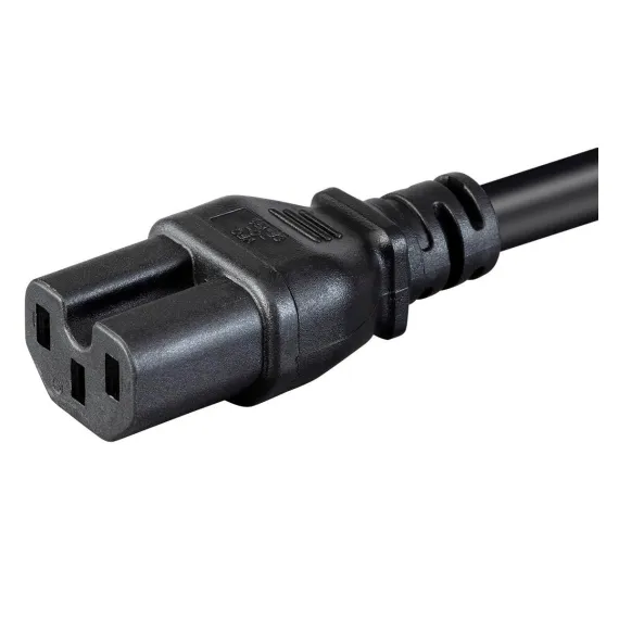 The North America NEMA 5-15 plug to IEC 60320 C15 female connector power cord works with most PCs, monitors, scanners, and printers, as well as high temperature appliances, such as electric kettles. Connect your computer, monitor, power adapter, or other device with a male IEC 60320 C16 panel connector to a standard US AC wall outlet. The power cord features a standard, grounded NEMA 5-15P plug on one end and an IEC 60320 C15 connector on the other end. Simply mate the female C15 connector with the male C16 connector on your device or power adapter, then plug the NEMA connector into a nearby AC power outlet, UPS, or other AC power source.