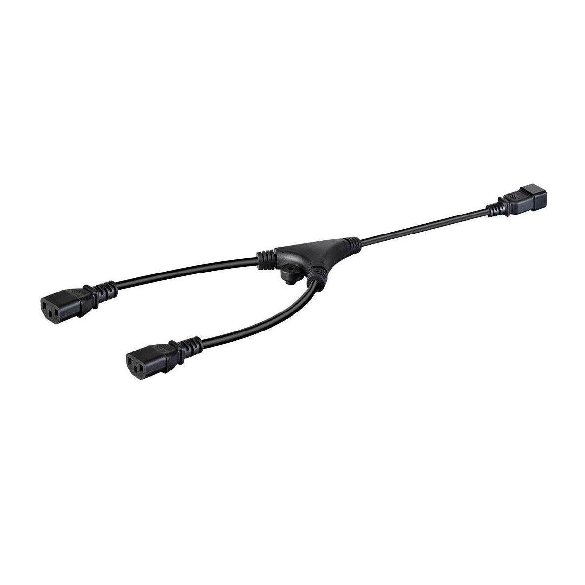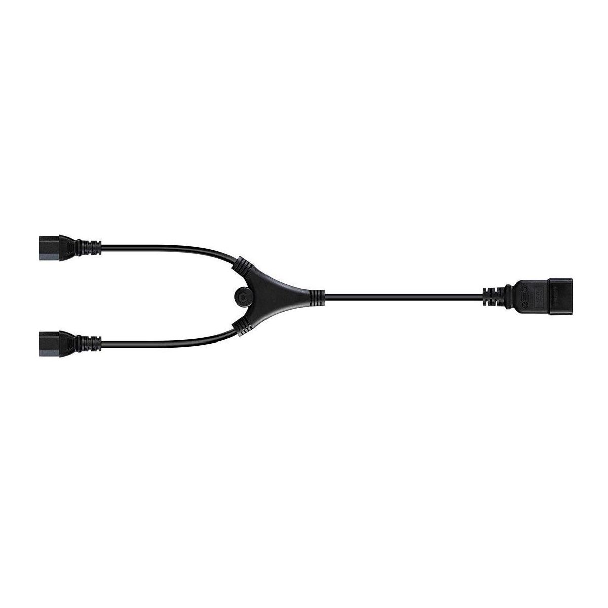 The Monoprice™ C19 to C13 Y-splitter cable lets you connect two C14 inlet devices to one C19 outlet on a PDU or UPS. Made with 14 AWG wire, it supports up to 15 amps/1875 watts at 125 volts. Certified ETL, cETL, CSA®, and RoHS for safety and quality.