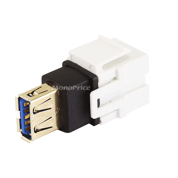 Monoprice Keystone Jack - USB 3.0 A Female to A Female Coupler Adapter - White | Flush Type
