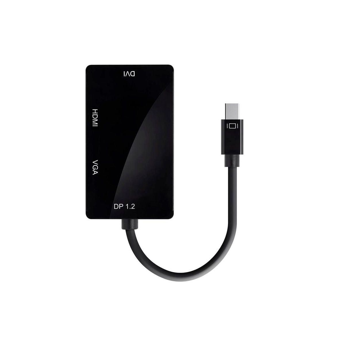 Monoprice Mini DisplayPort 1.2a / Thunderbolt to 4K HDMI, DVI, and VGA Passive Adapter, Black (112799)