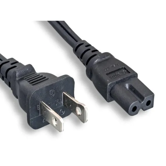 Connect small appliances, laptop power adapters, and other equipment with a polarized IEC 60320 C8P power receptacle. This power cord features a polarized IEC 60320 C7P plug on one end and a polarized NEMA 1-15P 2-prong plug on the other end. This power cord features 18AWG conductors and is rated for a 125V, 10 amp load.