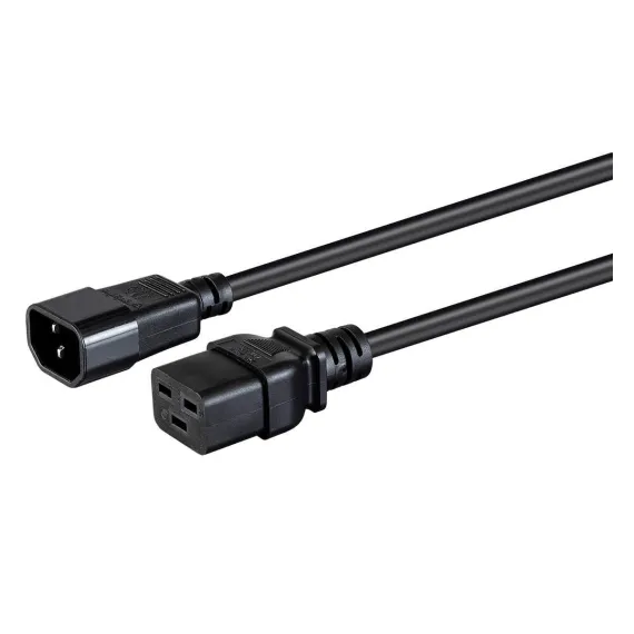 IEC 60320 C14 to IEC 60320 C19 power cords are commonly used between Cisco or Juniper Networks rack mounted equipment and the PDU in a data cabinet. Extend the reach of your AC powered device using this AC power extension cord to energize equipment from a distant power outlet. This cable features a standard, grounded IEC 60320 C14 plug on one end and an IEC 60320 C19 receptacle on the other.