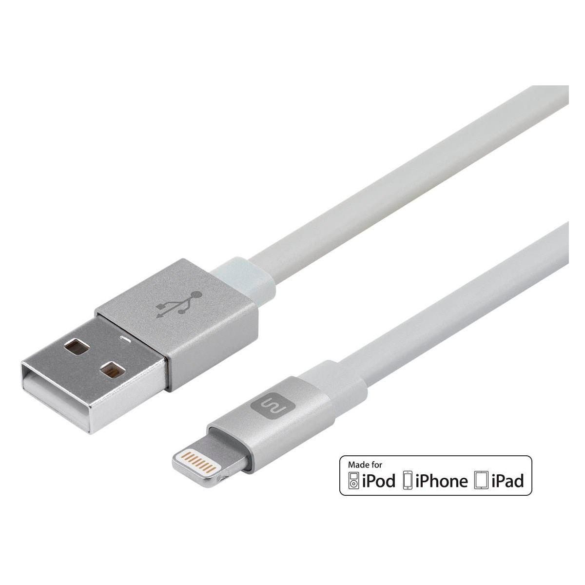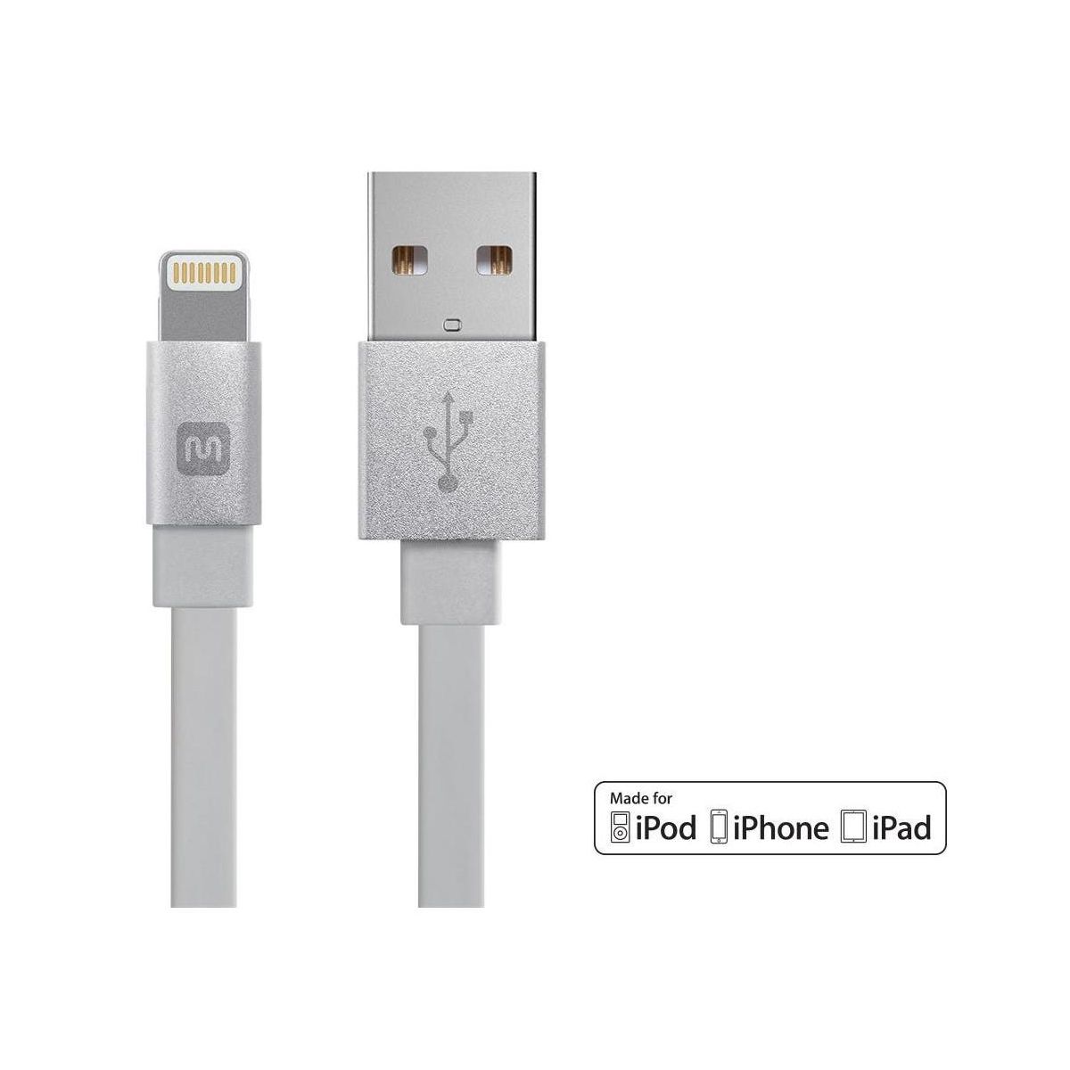 Monoprice Premium Flat Apple MFi Certified Lightning to USB-A Charging Cable - 6in, White