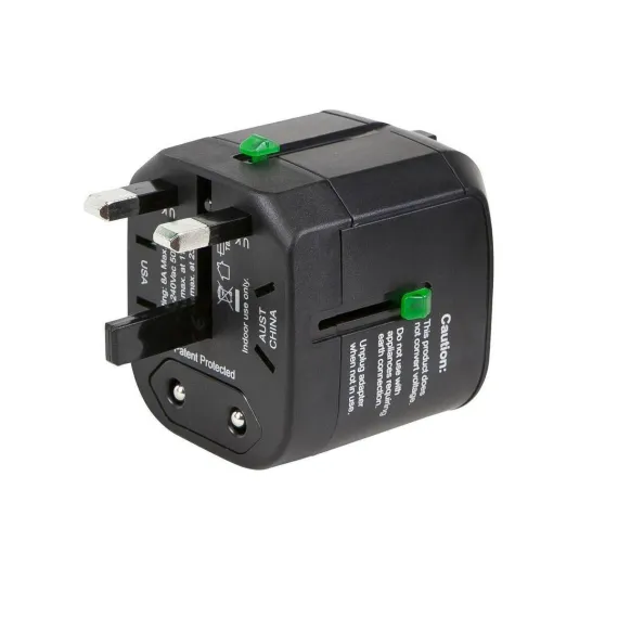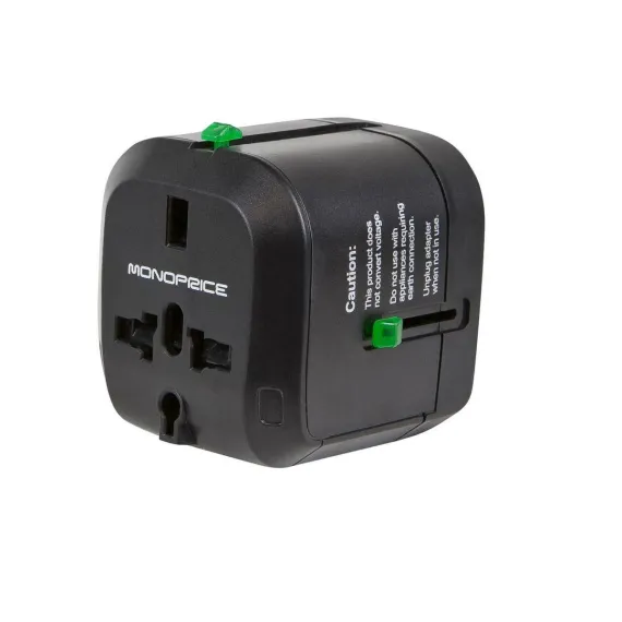 Monoprice Universal Travel Adapter - Black, For NEMA 1-15 (US), CEE 7/16 Europlug (EU), BS 1363 (UK), AS/NZS 3112 (Australia, New Zealand, China)