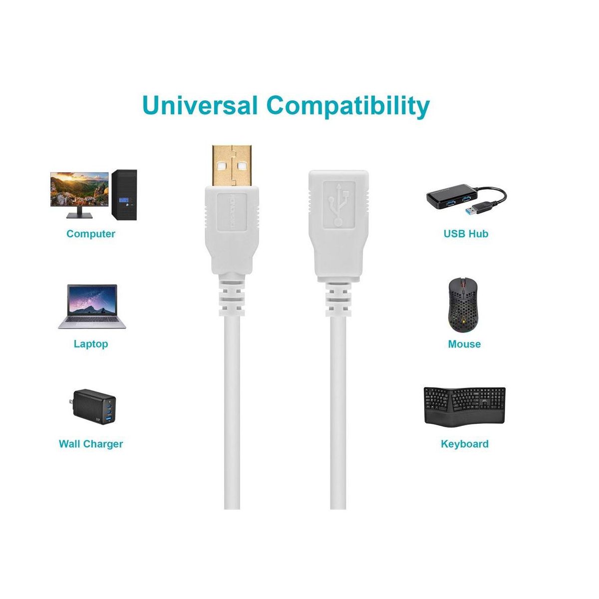 Monoprice USB 2.0 Extension Cable - 1.5 Feet - White | USB Type-A to USB Type-A Female, 28/24AWG, Gold Plated