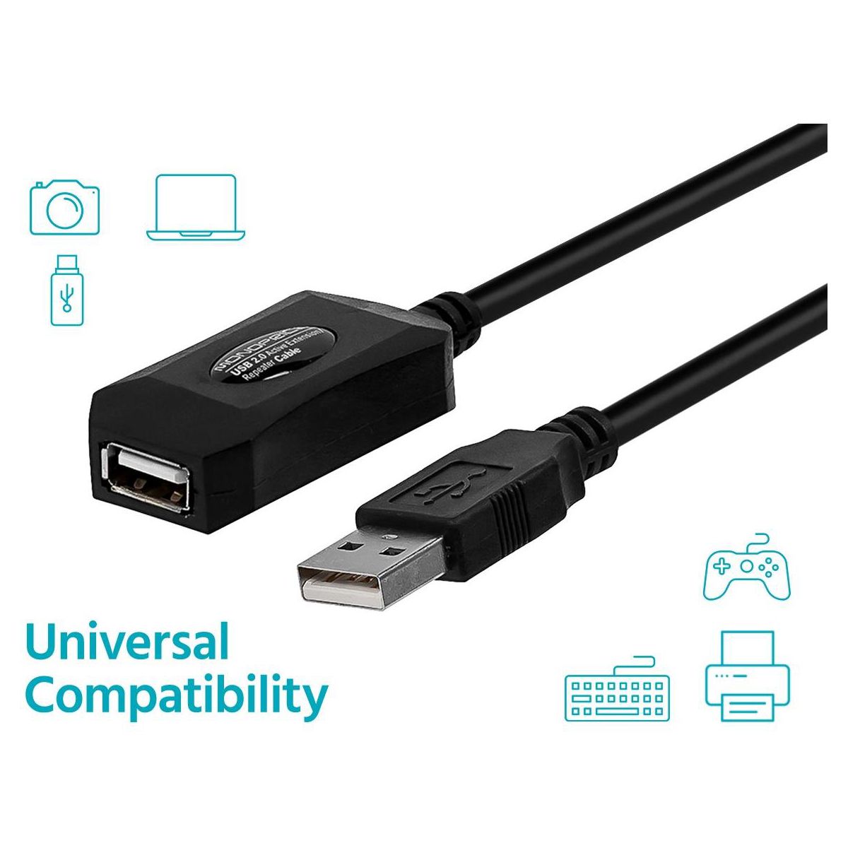 Monoprice USB 2.0 Extension Cable - 16 Feet - Black | USB Type-A Male to Type-A Female, Active, 20/28AWG, Repeater, Kinect & PS3 Move Compatible