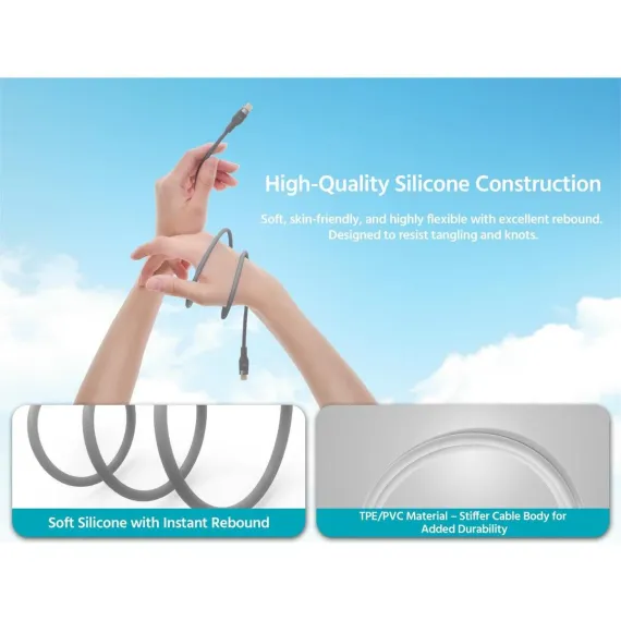 Monoprice USB 2.0 USB-C to USB-C Silicone Cable 6ft Gray