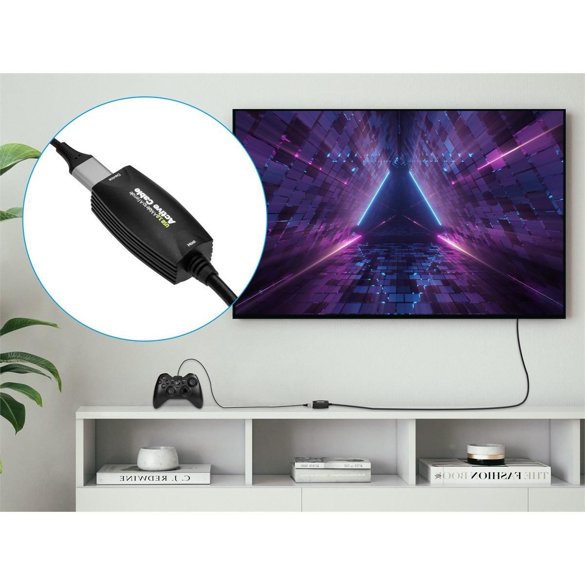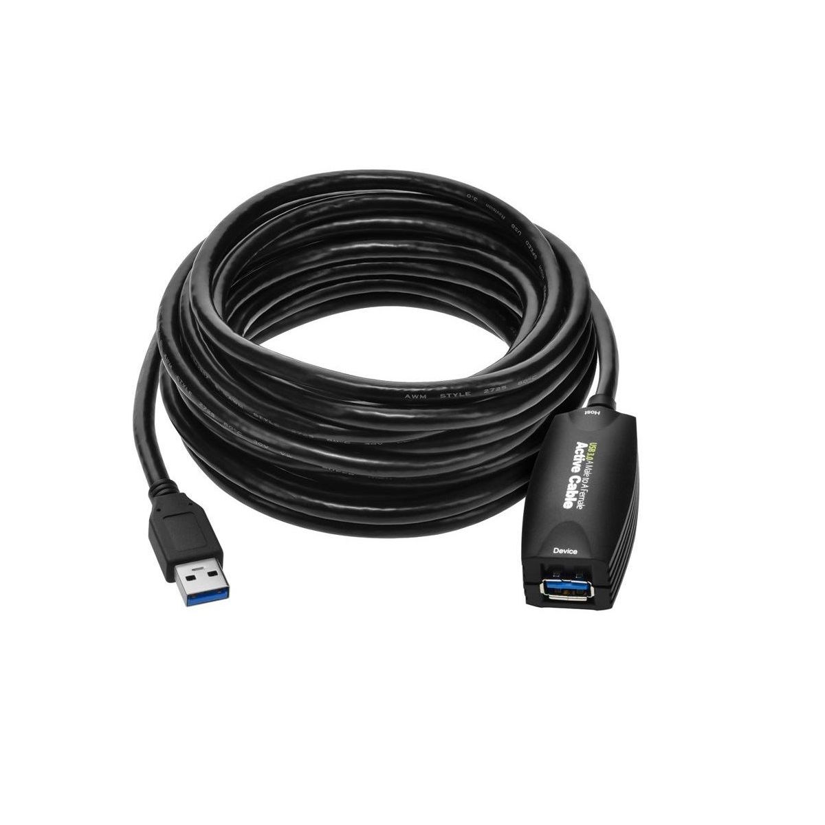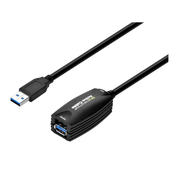 Take USB 3.0 to new lengths with this USB 3.0 Active extension cable from Monoprice! With data transfer rates up to 10 times faster than USB 2.0, USB 3.0 is quickly gaining in popularity. However, although it has a higher voltage and current level, passive cables are still limited to a maximum length less than 15 feet. This active extension cable draws power from the USB 3.0 bus and uses it to boost and regenerate the data signals, ensuring that full SuperSpeeds can be maintained to much longer lengths. By combining two of these extension cables with a 3 meter passive cables a total length of 13 meters (42.6 feet).This 5 meter (16.4 foot) cable is backwards compatible with all previous USB versions and any USB equipped device. It has a USB 3.0 A male connector on one end and a USB 3.0 A female port on the other end. Per the USB 3.0 spec, the plastic inside each connector is colored blue to distinguish it from connectors designed for previous USB versions.