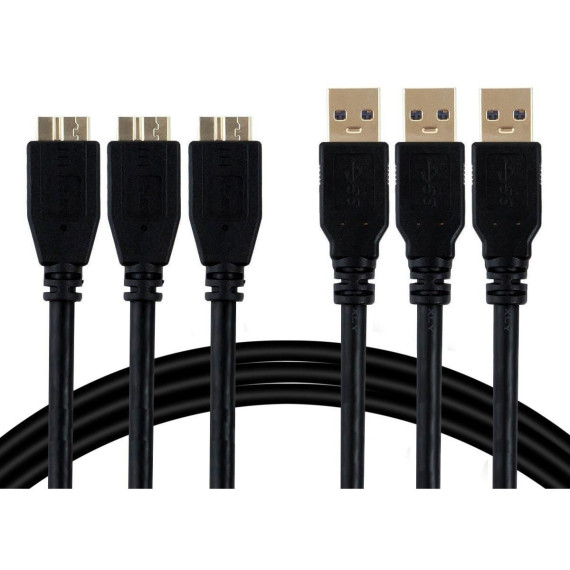 Monoprice USB-A to Micro B 3.0 Cable - 2 Meters - Black (3 Pack) For Samsung Galaxy S5, Note Pro 12.2, Note 3, WD Camera Hard Drive - Select Series