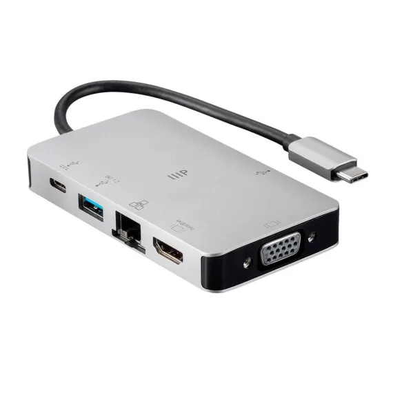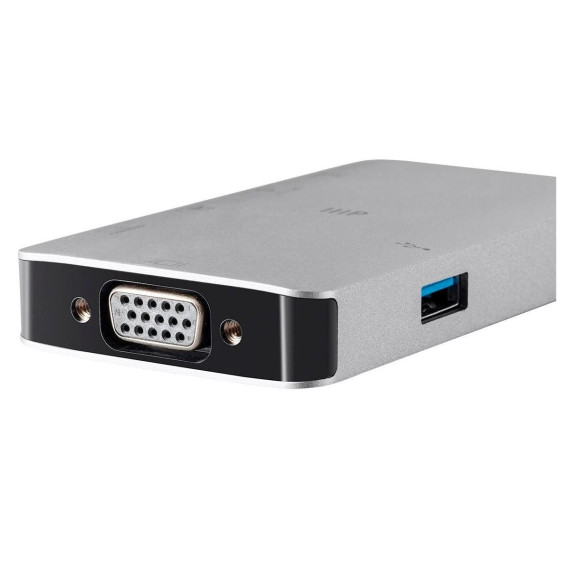 USB C to USB3.0 A+ | USB 3.0 A (BC1.2), RJ45 (Gigabit Ethernet) , VGA ,HDMI (4K@30Hz) , USB C data & PD3.0 100W charging, Support 5G, Fast Role Swap, Aluminum alloy shell, & Nickel Plated Connector.