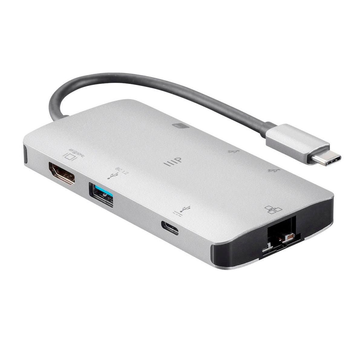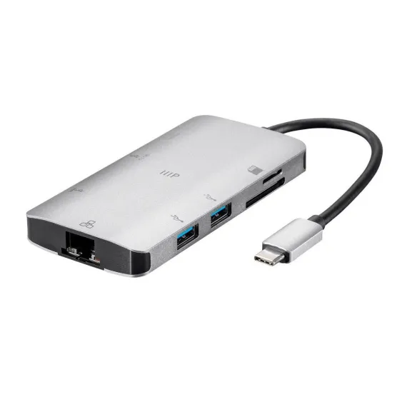 Monoprice USB-C To HDMI Adapter - Aluminum Body With Gigabit Ethernet, 3-Port USB 3.0, SD/MicroSD Reader, USB-C 100W, Power Delivery 3.0 Ports