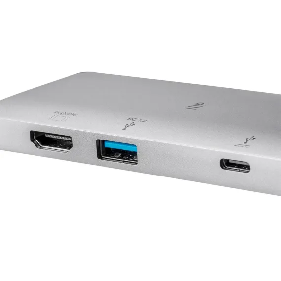 Extend your reach and grasp new possibilities your USB Type-C computer with the Monoprice Consul Series of USB-C adapters! By unlocking USB-C 3.1 functionality, the consul series is able to offer a variety options to expand your ability to work anywhere you need or want. This consul series USB-C to HDMI adapter allows you to connect an external HDMI display to mirror your laptop's display or expand your system's desktop area, with support for resolutions up to 4K@30Hz. It also features a Gigabit ethernet port, a USB-C port, USB 3.0 Type-A charge and sync port, two USB 3.0 Type-A data ports, and SD and microSD UHS-I card slots for advanced data transfer capabilities for your computer's USB-C port. The built-in Gigabit ethernet adapter allows you to enjoy the superior security and increased speeds of a wired ethernet connection. USB 3.0 connectivity allows you to charge and sync mobile devices or use external drives and provides data transfer speeds up to 5Gbps through either the USB-A or USB-C ports. The USB-C port supports the Power Delivery (PD) 3.0 standard, delivering up to 100 watts of power to compatible devices. The PD 3.0 standard also ensures that connected devices won't reset or disconnect when power is applied to or removed from the USB-C port. The lightweight and premium aluminum design results in a better built adapter, making it more durable than adapters made of plastic.